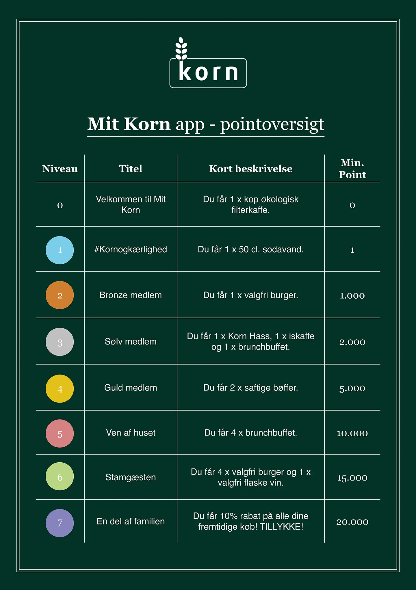 Hvis du skifter telefonnummer, så skriv dit gamle og nye telefonnummer til app@cafekorn.dk – så er vi klar til at hjælpe med at skifte det, så du kan fortsætte med at optjene point.